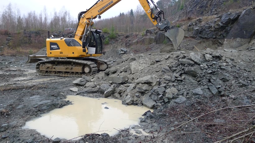 Two chain excavators are currently working to optimise the habitats of the midwife toad in a quarry in the district of Goslar. "Last year we determined that the waters are currently not suitable