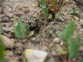 The Natterjack Toad was originally found mainly in floodplain landscapes. Today, the pioneer species mainly colonizes secondary habitats in open and vegetation-poor areas. Land habitats are warm and dry areas that can be found today in active and former sand, gravel and clay pits, quarries or military training grounds. In addition, the soil substrate must be relatively loose (e.g. sand), as the Natterjack Toad often digs itself into the soil in addition to using crevices as hiding places. As spawning waters, Natterjack Toads prefer very sunny and temporarily water-bearing shallow and very small waters.